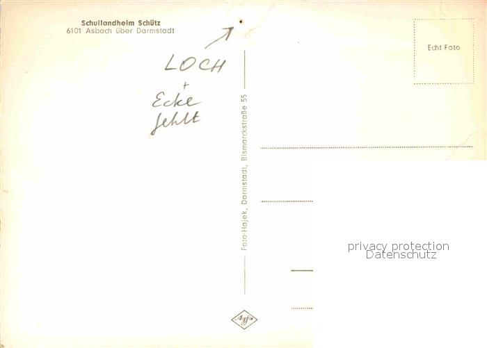 72875778 Asbach Modautal Schullandheim Schuetz postalisch nicht gelaufen Erhaltung siehe scans [FriedD77] KatCode: 11110006432013