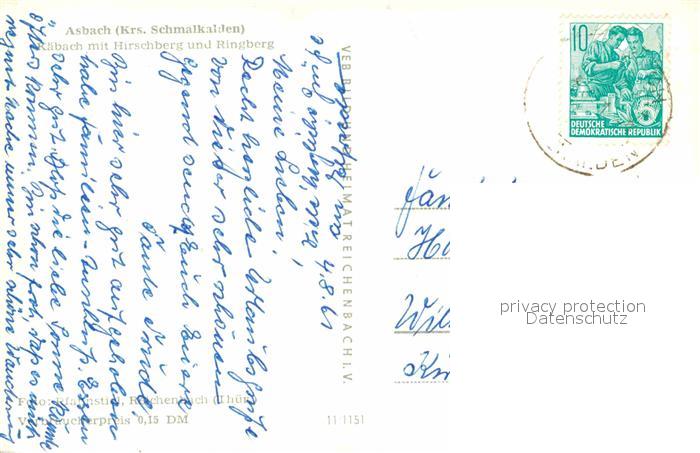 72698653 alte Postkarte Asbach Schmalkalden Fliegeraufnahme Raebach mit Hirschberg und Ringberg postalisch gelaufen Erhaltung siehe scans [LiesaD40] KatCode: 11110016066063