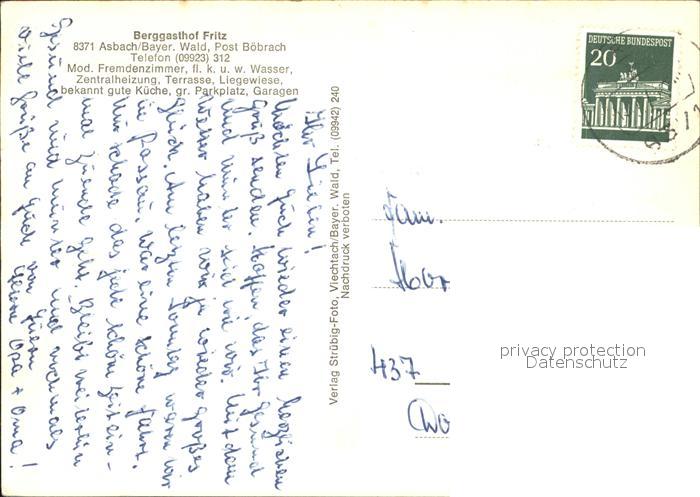 71927317 alte Postkarte Asbach Viechtach Berggastho Fritz postalisch gelaufen KatCode: 11110009276120