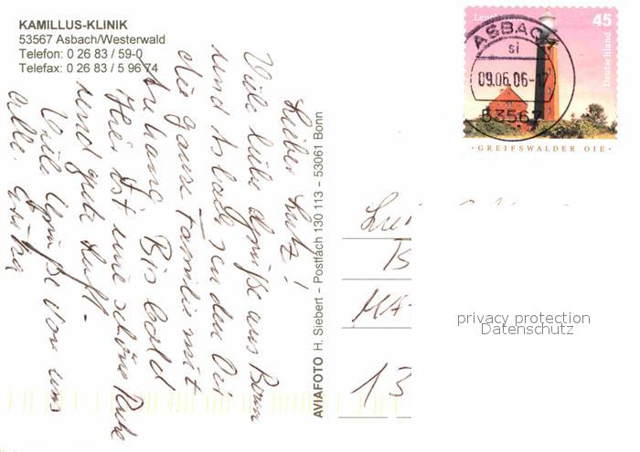 72664561 alte Postkarte Asbach Westerwald Fliegeraufnahme Kamillus Klinik postalisch gelaufen Erhaltung siehe scans [AndreD76] KatCode: 11110007138003