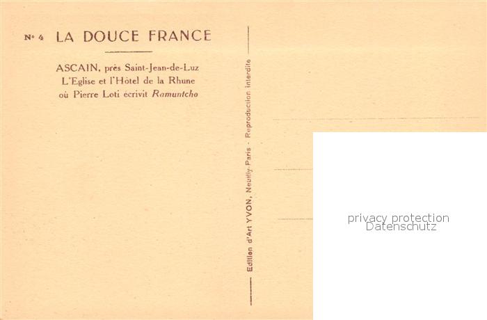 13543484 Ascain Saint Jean de Luz Eglise Hotel de la Rhone postalisch nicht gelaufen Erhaltung siehe scans [KathaD81] KatCode: 11170064164065