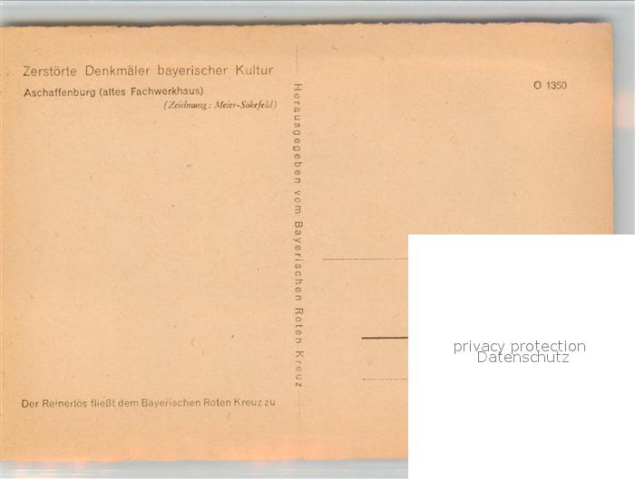 43497162 Aschaffenburg Main altes Fachwerkhaus zerst?rte Denkm?ler der bayerischen Kultur Zeichnung Meier S?kefeld postalisch nicht gelaufen Erhaltung siehe scans [LiesaD40] KatCode: 11110009661000