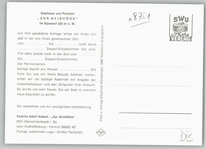 40245826 Aschaffenburg Main Aschaffenburg Gasthaus Pension Zur Geishoehe Postalisch nicht gelaufen Alte Ansichtskarte Postkarte Katcode 11110009661000