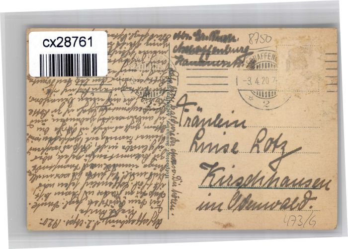 30910177 alte Postkarte Aschaffenburg Main Aschaffenburg Institut Englischen Fraeulein Pensionat Schule postalisch gelaufen KatCode: 11110009661000