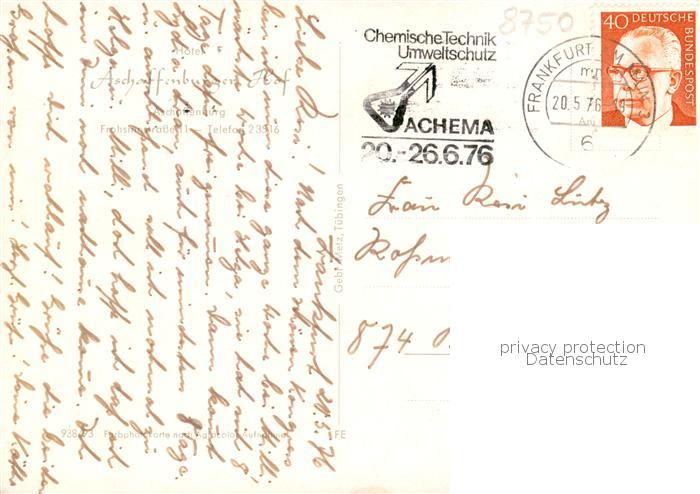73866921 alte Postkarte Aschaffenburg Main Aschaffenburger Hof postalisch gelaufen Erhaltung siehe scans [WerneD78] KatCode: 11110009661000