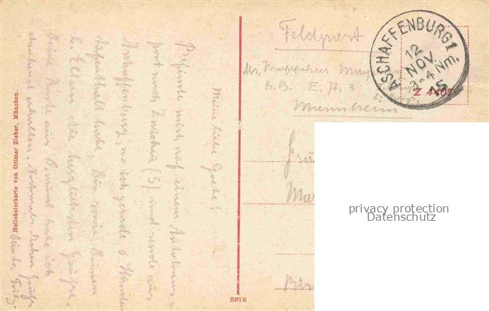 74121715 alte Postkarte ASCHAFFENBURG Main Bayern Schloss Feldpost postalisch gelaufen Erhaltung siehe scans [FriedD77] KatCode: 11110009661000