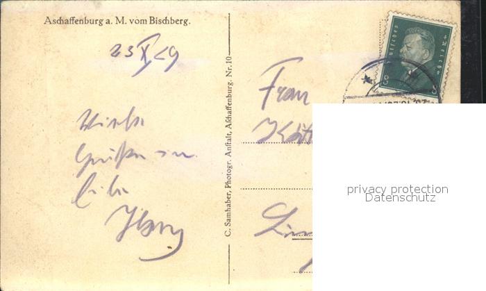 72138777 alte Postkarte Aschaffenburg Main Blick vom Bischberg postalisch gelaufen Erhaltung siehe scans KatCode: 11110009661000