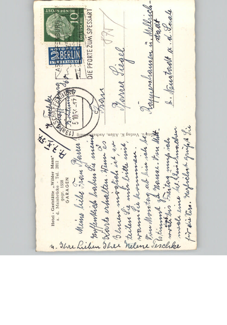 31175259 Aschaffenburg Main Hotel Wilder Mann postalisch nicht gelaufen KatCode: 11110009661000