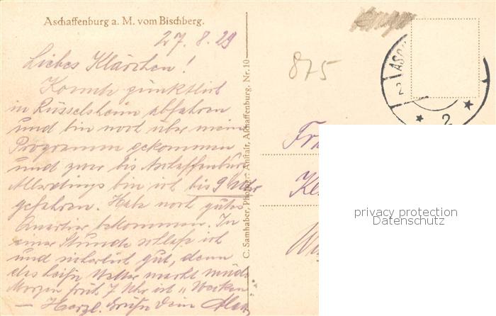 73820307 alte Postkarte Aschaffenburg Main Panorama postalisch gelaufen Erhaltung siehe scans [FriedD77] KatCode: 11110009661000