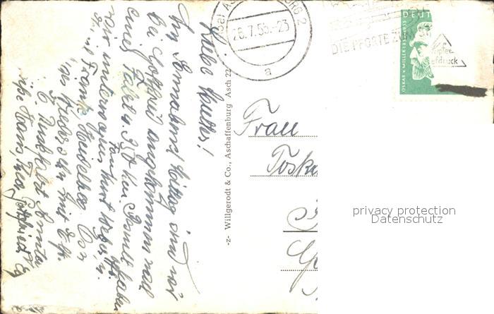 72365031 alte Postkarte Aschaffenburg Main Pompejanum Schloss Schoental Stiftskirche Pilgerbrunnen Schlosshof Schoenbusch Schloesschen Mespelbrunnen Maerchenschloss postalisch gelaufen Erhaltung siehe scans KatCode: 11110009661000