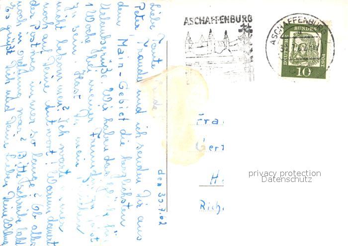 73298312 alte Postkarte Aschaffenburg Main Rathaus Hauptbahnhof Schloss Herstallturm postalisch gelaufen Erhaltung siehe scans [PaolaD17] KatCode: 11110009661000