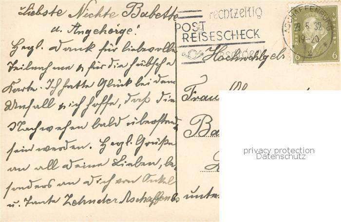 73777106 alte Postkarte Aschaffenburg Main Sandtor postalisch gelaufen Erhaltung siehe scans [FriedD77] KatCode: 11110009661000