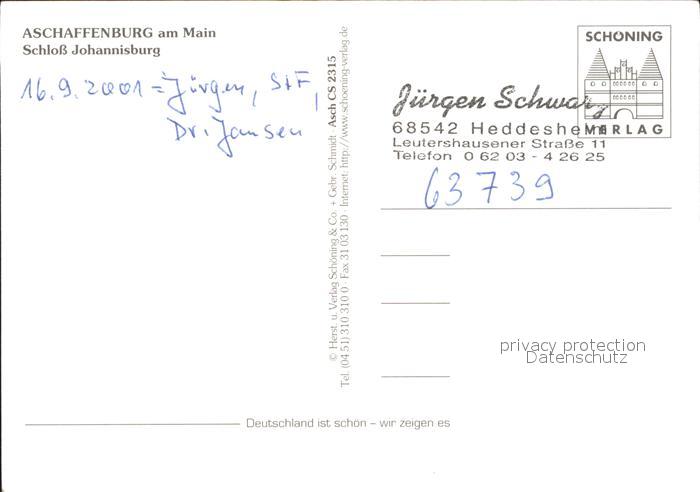 71914202 Aschaffenburg Main Schloss Johannisburg postalisch nicht gelaufen Erhaltung siehe scans KatCode: 11110009661000