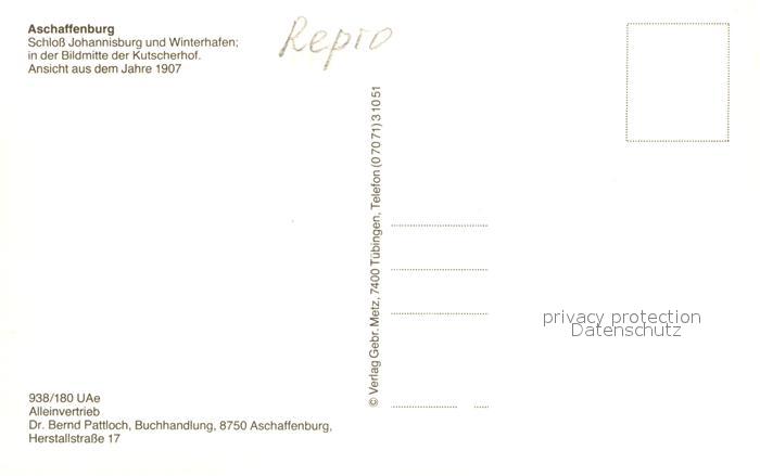 73016534 Aschaffenburg Main Schloss Johannisburg und Winterhafen mit Kutscherhof um 1907 postalisch nicht gelaufen Erhaltung siehe scans [WerneD78] KatCode: 11110009661000