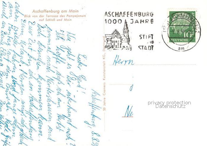 73227591 alte Postkarte Aschaffenburg Main Schloss Mainpartie Terrasse des Pompejanums postalisch gelaufen Erhaltung siehe scans [WerneD78] KatCode: 11110009661000