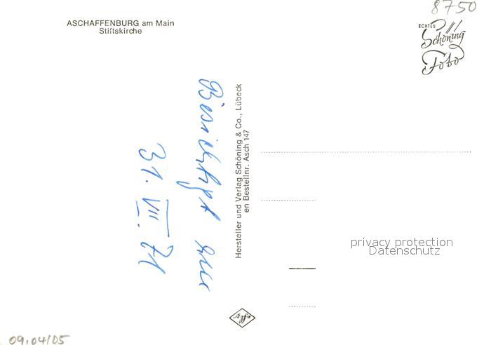 72928537 Aschaffenburg Main Stiftskirche postalisch nicht gelaufen Erhaltung siehe scans [WerneD78] KatCode: 11110009661000