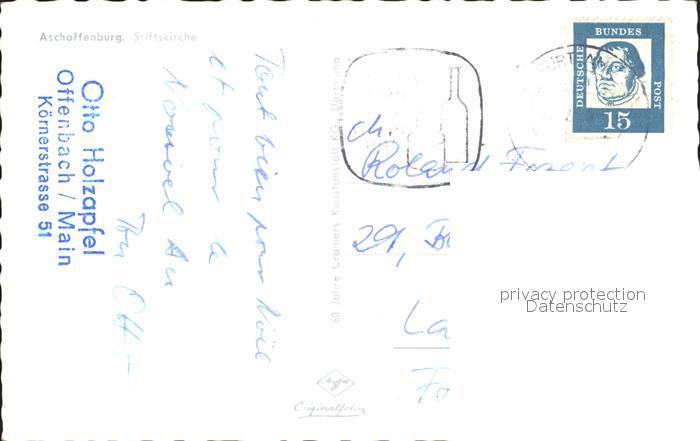 72062948 alte Postkarte Aschaffenburg Main Stiftskirche postalisch gelaufen Erhaltung siehe scans KatCode: 11110009661000