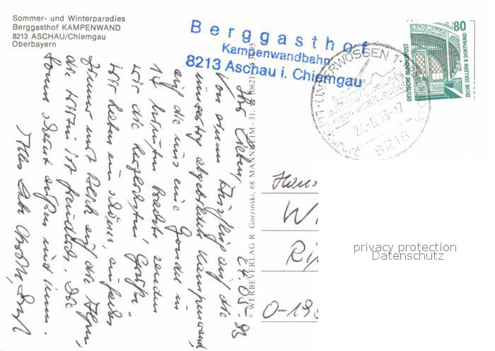 72890684 alte Postkarte Aschau Chiemgau Berggasthof Kampenwand postalisch gelaufen Erhaltung siehe scans [WerneD78] KatCode: 11110009187114