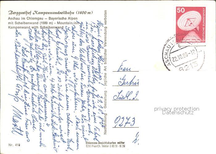 72423957 alte Postkarte Aschau Chiemgau Berggasthof Kampenwandseilbahn Allgaeuer Alpen Bergwandern postalisch gelaufen Erhaltung siehe scans KatCode: 11110009187114