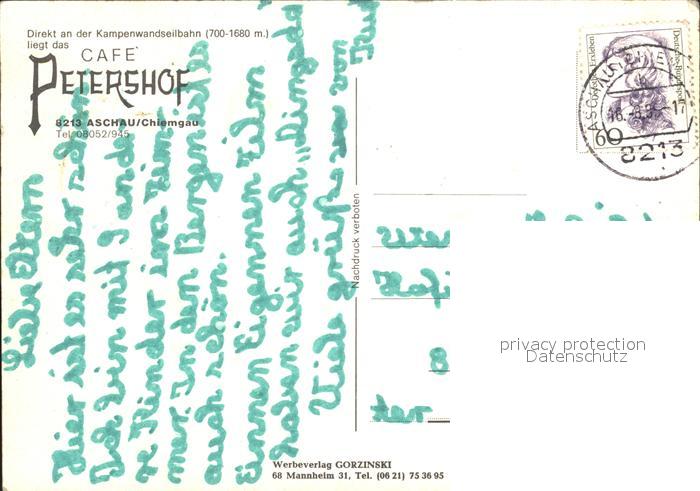 72286714 alte Postkarte Aschau Chiemgau Cafe Petershof postalisch gelaufen Erhaltung siehe scans KatCode: 11110009187114