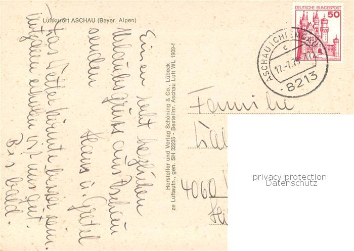 73686124 alte Postkarte Aschau Chiemgau Fliegeraufnahme postalisch gelaufen Erhaltung siehe scans [WerneD78] KatCode: 11110009187114