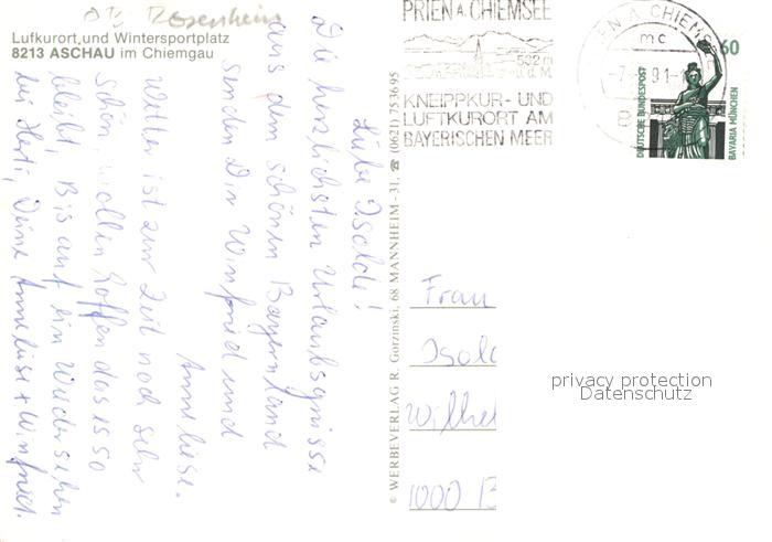 73020272 alte Postkarte Aschau Chiemgau Freibad Konzertbuene Kapelle postalisch gelaufen Erhaltung siehe scans [NatalD47] KatCode: 11110009187114