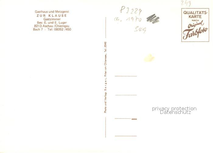 73569611 Aschau Chiemgau Gasthaus Metzgerei Zur Klause Gastzimmer postalisch nicht gelaufen Erhaltung siehe scans [FriedD77] KatCode: 11110009187114