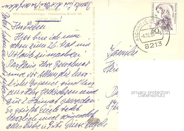 73759064 alte Postkarte Aschau Chiemgau Haus Ablinger postalisch gelaufen Erhaltung siehe scans [WerneD78] KatCode: 11110009187114