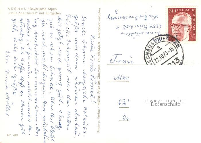 73001467 alte Postkarte Aschau Chiemgau Haus des Gastes mit Kurgarten postalisch gelaufen Erhaltung siehe scans [AndreD76] KatCode: 11110009187114