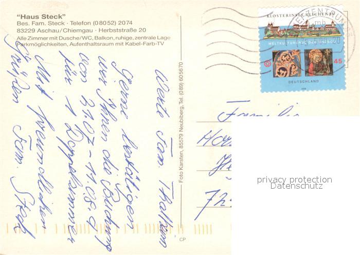 73739724 alte Postkarte Aschau Chiemgau Haus Steck Park postalisch gelaufen Erhaltung siehe scans [WerneD78] KatCode: 11110009187114