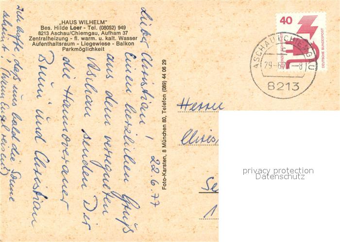 73654346 alte Postkarte Aschau Chiemgau Haus Wilhelm Panorama postalisch gelaufen Erhaltung siehe scans [WerneD78] KatCode: 11110009187114