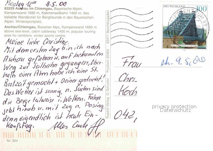72751801 alte Postkarte Aschau Chiemgau Kampenwand Kabinenseilbahn Wandergebiet Bayerische Alpen Fliegeraufnahme postalisch gelaufen Erhaltung siehe scans [FriedD77] KatCode: 11110009187114