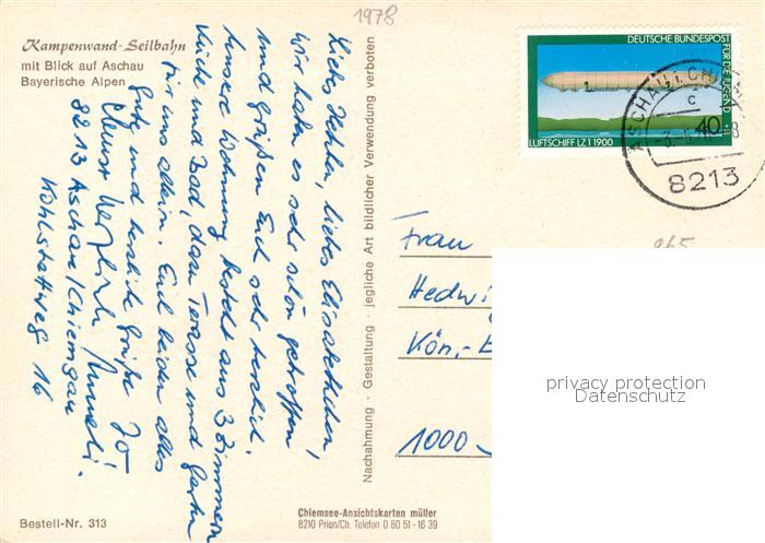 73167317 alte Postkarte Aschau Chiemgau Kampenwand Seilbahn Bayerische Alpen Talblick postalisch gelaufen Erhaltung siehe scans [FriedD77] KatCode: 11110009187114
