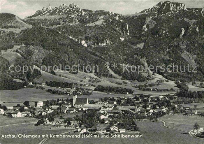 72821374 alte Postkarte Aschau Chiemgau Panorama mit Kampenwand Scheibenwand Chiemgauer Alpen postalisch gelaufen Erhaltung siehe scans [FriedD77] KatCode: 11110009187114