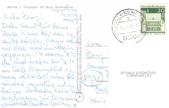 72885104 alte Postkarte Aschau Chiemgau Partie am Bachlauf Kirche Burg Hohenaschau postalisch gelaufen Erhaltung siehe scans [FriedD77] KatCode: 11110009187114
