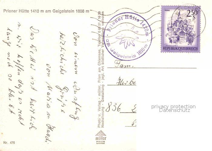 72696864 alte Postkarte Aschau Chiemgau Priener Huette Geigelstein postalisch gelaufen Erhaltung siehe scans [KathaD79] KatCode: 11110009187114