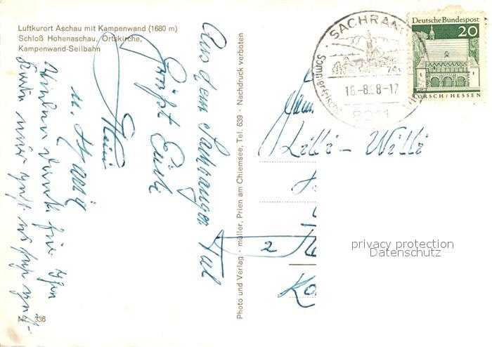 73020279 alte Postkarte Aschau Chiemgau Schloss Hohenaschau Luftseilbahn postalisch gelaufen Erhaltung siehe scans [NatalD47] KatCode: 11110009187114