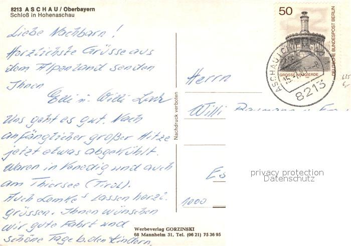 73166988 alte Postkarte Aschau Chiemgau Schloss Hohenaschau postalisch gelaufen Erhaltung siehe scans [KathaD81] KatCode: 11110009187114