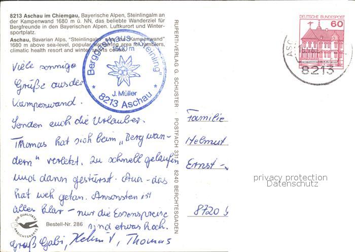 72227590 alte Postkarte Aschau Chiemgau Steinlingalm an der Kampenwand Bayerische Alpen postalisch gelaufen Erhaltung siehe scans KatCode: 11110009187114