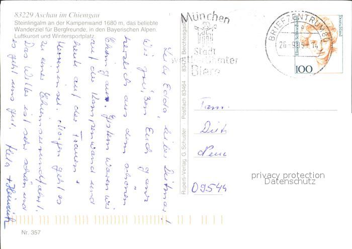 72376052 alte Postkarte Aschau Chiemgau Steinlingalm Kampenwand Luftkurort postalisch gelaufen Erhaltung siehe scans KatCode: 11110009187114