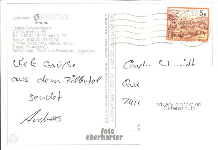 72277043 alte Postkarte Aschau Tirol Aktivhotel Seewirt postalisch gelaufen Erhaltung siehe scans KatCode: 11390335070902