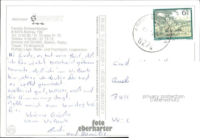 72277045 alte Postkarte Aschau Tirol Aktivhotel Seewirt postalisch gelaufen Erhaltung siehe scans KatCode: 11390335070902