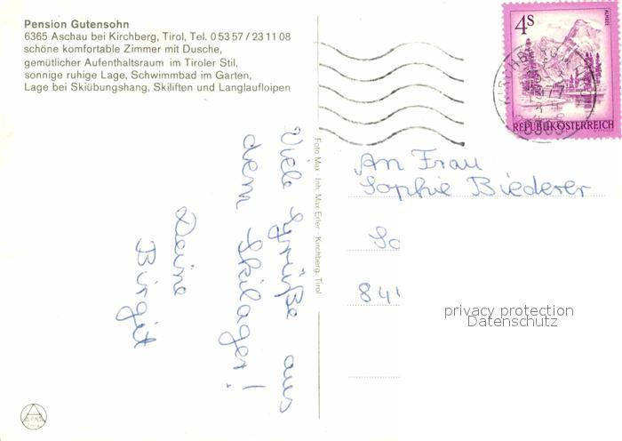 12721100 alte Postkarte Aschau Tirol Pension Gutensohn postalisch gelaufen Erhaltung siehe scans [NatalD47] KatCode: 11390335070902