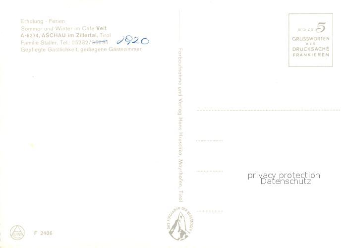 13237272 Aschau Zillertal Cafe Veit postalisch nicht gelaufen Erhaltung siehe scans [NatalD47] KatCode: 11390335070902