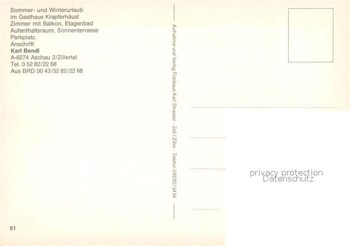 73745224 Aschau Zillertal Gasthaus Krapfenhaeusl Aussenansicht postalisch nicht gelaufen Erhaltung siehe scans [LiesaD40] KatCode: 11390335070902