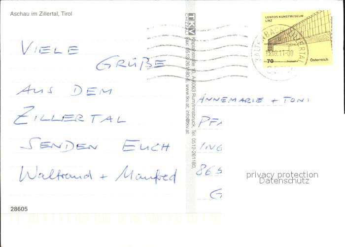 72592728 alte Postkarte Aschau Zillertal Gesamtansicht mit Alpenpanorama Kirche Dampflokomotive Trachten postalisch gelaufen Erhaltung siehe scans [FriedD77] KatCode: 11390335070902