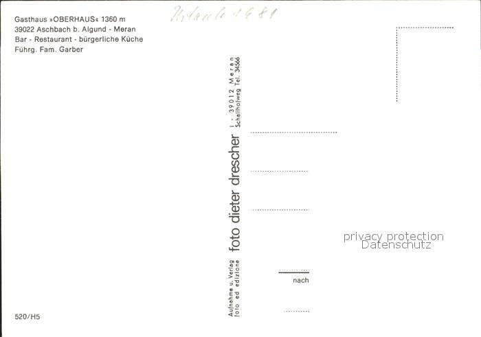 Aschbach Algund Gasthaus Oberhaus postalisch nicht gelaufen Erhaltung siehe scans
