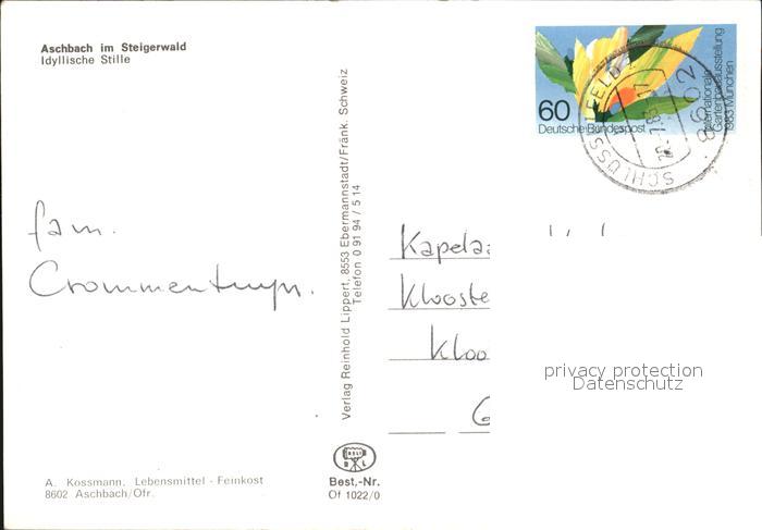 72410140 alte Postkarte Aschbach Oberfranken Kirche Fluss postalisch gelaufen Erhaltung siehe scans KatCode: 11110009471220