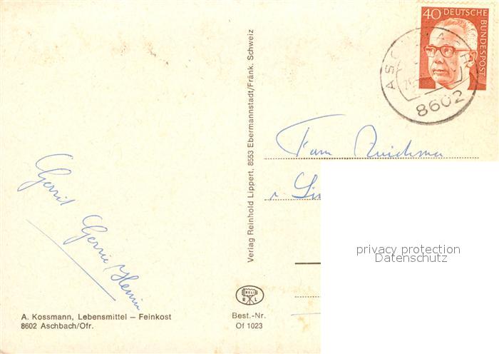 72936567 alte Postkarte Aschbach Oberfranken Teilansichte Siedlung Denkmal postalisch gelaufen Erhaltung siehe scans [FriedD77] KatCode: 11110009471220