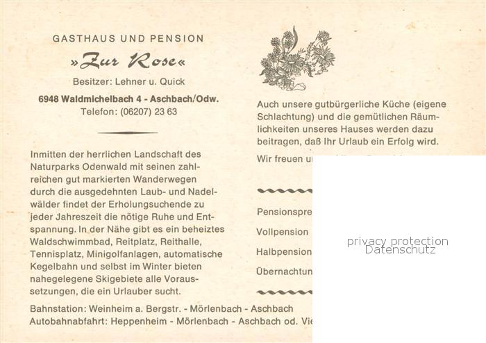 73726210 Aschbach Odenwald Gasthaus-Pension Zur Rose Teilansichten postalisch nicht gelaufen Werbekarte (keine Postkarte) Erhaltung siehe scans [LiesaD40] KatCode: 11110006431021